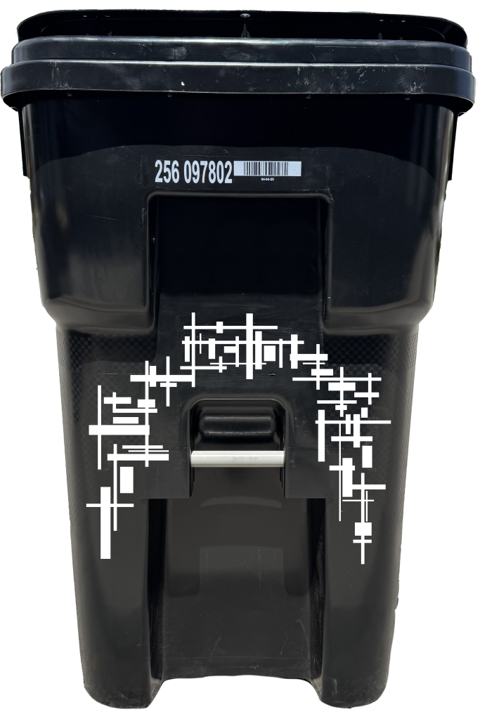 This wrap collection is designed specifically to fit the 65 Gallon Rehrig Pacific Enviroguard Rollout Cart - the most common trash can issued by Cities. If you don’t have the 65 gallon model, the designs won’t fit correctly. (Cities will also issue the 35 & 95 gallon versions of this cart.)