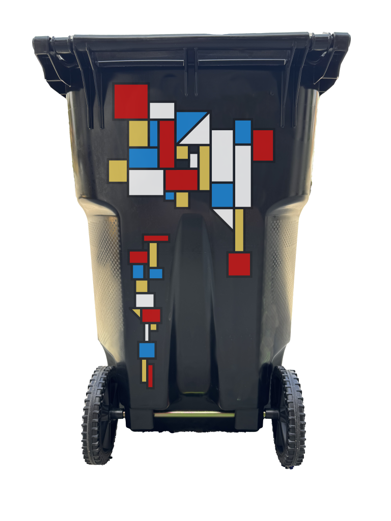 This wrap collection is designed specifically to fit the 65 Gallon Rehrig Pacific Enviroguard Rollout Cart - the most common trash can issued by Cities.  If you don’t have the 65 gallon model, the designs won’t fit correctly.  (Cities will also issue the 35 & 95 gallon versions of this cart.)